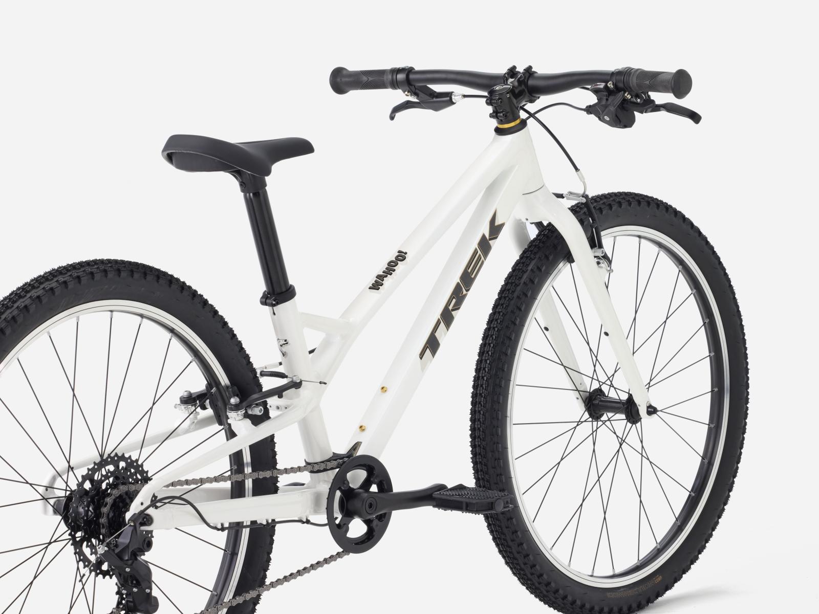 Einen Rahmen aus Alpha Silver Aluminium mit 24 Zoll großen Laufrädern und 2 Zoll breiten Reifen, die für Grip und Geschwindigkeit auf Asphalt konzipiert sind. Dazu gibt es eine speziell auf Kinderbedürfnisse zugeschnittene Ausstattung, wie etwa die intuitive 8-Gang-Schaltung von microSHIFT und unkomplizierte Felgenbremsen samt kindgerechten Bremshebeln.