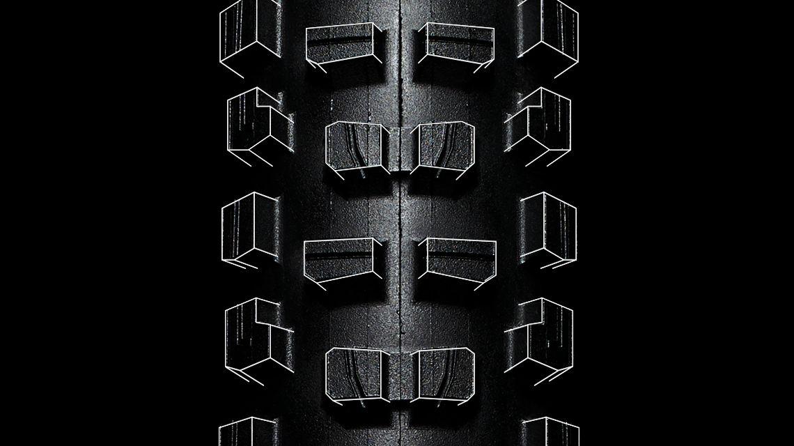 - Doppelte Mittelstollen und aggressive Seitenstollen sorgen für ein souveränes Kurvenverhalten und eine hohe Bremstraktion
