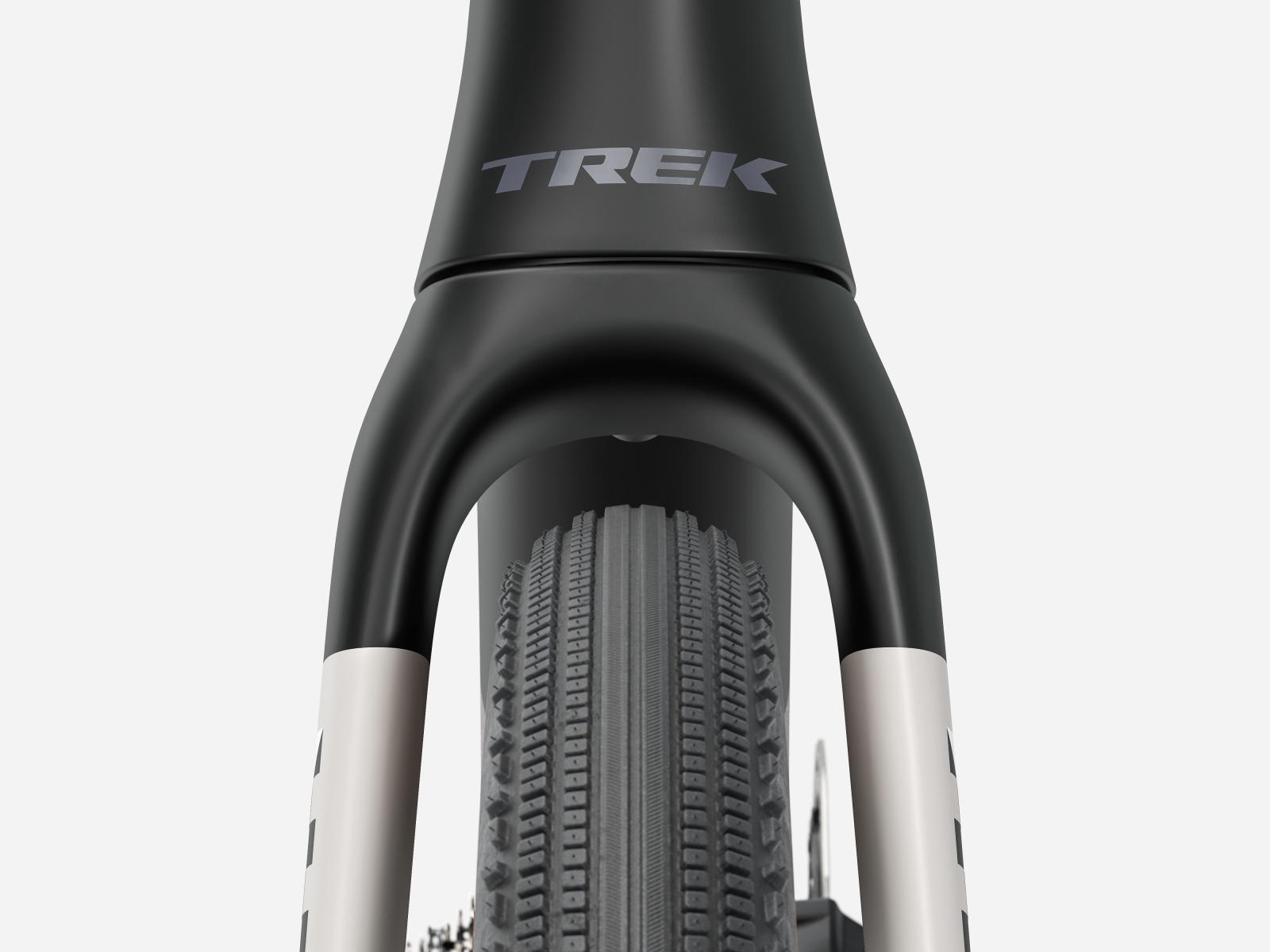 Einen leichten und aerodynamischen Rahmen aus 800 Series OCLV Carbon mit IsoSpeed-Komforttechnologie und vielen Befestigungspunkten für die wichtigsten Utensilien am Renntag. Außerdem bekommst du Bontrager Aeolus Pro 3V Carbonlaufräder und eine Trek Aero RSL Lenker/Vorbau-Einheit aus Carbon für ein leichtgewichtiges und agiles Fahrverhalten, während der drahtlos schaltende SRAM Force XPLR AXS E1 13fach-Antrieb auch auf deinen ruppigsten Wegen bestens performt.