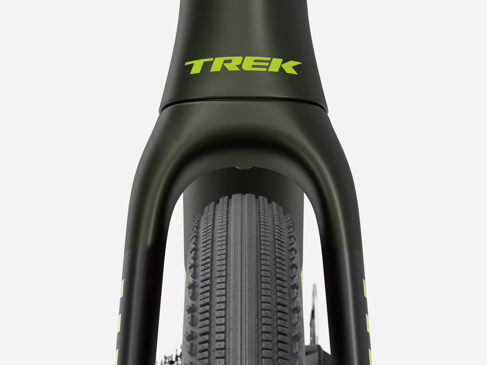 Einen leichten und aerodynamischen Rahmen aus 800 Series OCLV Carbon mit IsoSpeed-Komforttechnologie und vielen Befestigungspunkten für die wichtigsten Utensilien am Renntag. Außerdem bekommst du Bontrager Aeolus Pro 3V Carbonlaufräder und eine Trek Aero RSL Lenker/Vorbau-Einheit aus Carbon für ein leichtgewichtiges und agiles Fahrverhalten, während der drahtlos schaltende SRAM Force XPLR AXS E1 13fach-Antrieb auch auf deinen ruppigsten Wegen bestens performt.