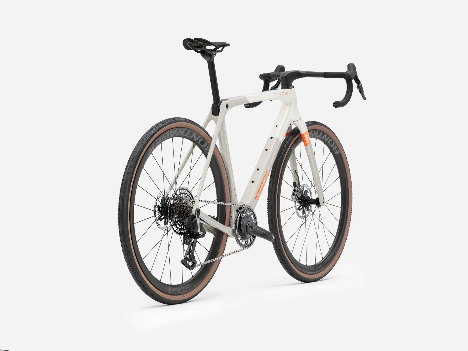 Einen leichten und aerodynamischen Rahmen aus 800 Series OCLV Carbon mit IsoSpeed-Komforttechnologie und vielen Befestigungspunkten für die wichtigsten Utensilien am Renntag. Bontrager Aeolus RSL 37V Carbonlaufräder und eine Trek Aero RSL Lenker-Vorbau-Einheit aus Carbon für ein leichtgewichtiges und agiles Fahrverhalten. Außerdem SRAMs leichtesten und ergonomischsten RED XPLR AXS Antrieb mit kabelloser Schaltung für ruppige Straßen.
