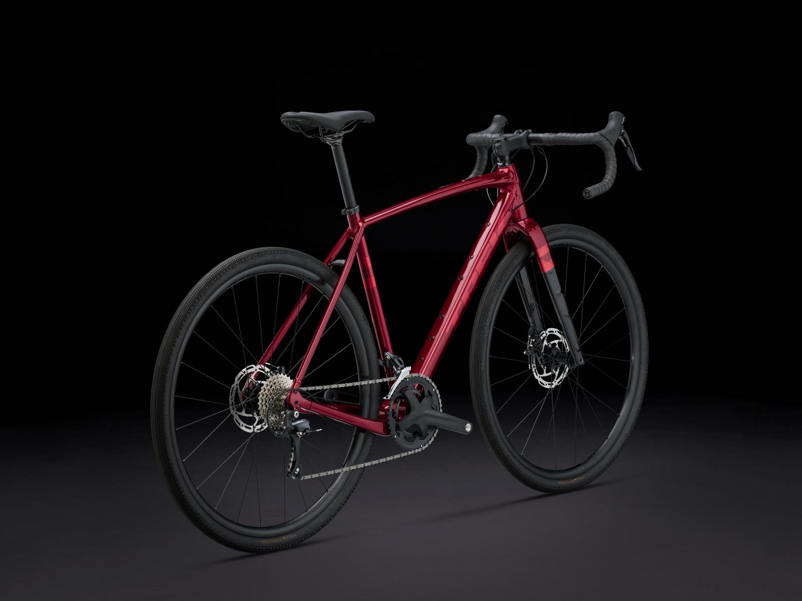 Einen agilen Rahmen aus 300 Series Alpha Aluminium, verborgene Züge, die deinen Taschen nicht in die Quere kommen, integrierte Aufnahmepunkte für Rahmentasche, Gepäckträger und Schutzbleche, einen Shimano Sora 2x9-Antrieb für geschmeidige Gangwechsel auf herausfordernden Anstiegen und in abwechslungsreichem Terrain, mechanische Scheibenbremsen für zuverlässige Bremsleistung unter allen Bedingungen, Tubeless-Ready-Laufräder und breite Bontrager Girona Pro Gravelreifen im Format 700 x 42C für zusätzlichen Komfort und souveräne Traktion.