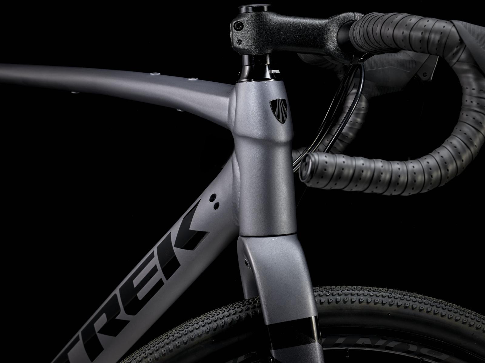 Einen agilen Rahmen aus 300 Series Alpha Aluminium, verborgene Züge, die deinen Taschen nicht in die Quere kommen, integrierte Aufnahmepunkte für Rahmentasche, Gepäckträger und Schutzbleche, einen SRAM Apex 1x11-Antrieb für geschmeidige Gangwechsel auf herausfordernden Anstiegen und in abwechslungsreichem Terrain, mechanische Scheibenbremsen für zuverlässige Bremsleistung unter allen Bedingungen, Tubeless-Ready-Laufräder und breite Bontrager Girona Pro Gravelreifen im Format 700 x 42C für zusätzlichen Komfort und souveräne Traktion.