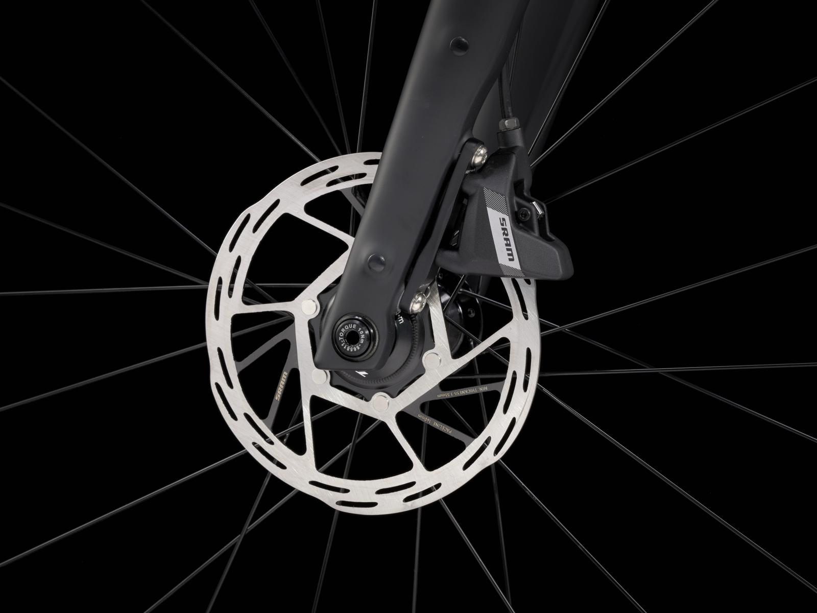 Einen Rahmen aus 300 Series Alpha Aluminium mit progressiver Geometrie, die bei hohen Geschwindigkeiten stabil und auf Anstiegen effizient ist, verborgene Züge, die deinen Taschen nicht in die Quere kommen, Gepäckträger- und Schutzblechösen und integrierte Aufnahmepunkte für eine Rahmentasche. Dazu gibt es einen SRAM Apex 1x12-Antrieb für herausfordernde Anstiege und tiefen Schotter, hydraulische Scheibenbremsen für zuverlässige Allwetterbremsleistung, Tubeless-Ready-Laufräder und breite Bontrager GR1 Team Issue Gravelreifen im Format 700 x 40C für zusätzliche Stabilität und souveräne Traktion.