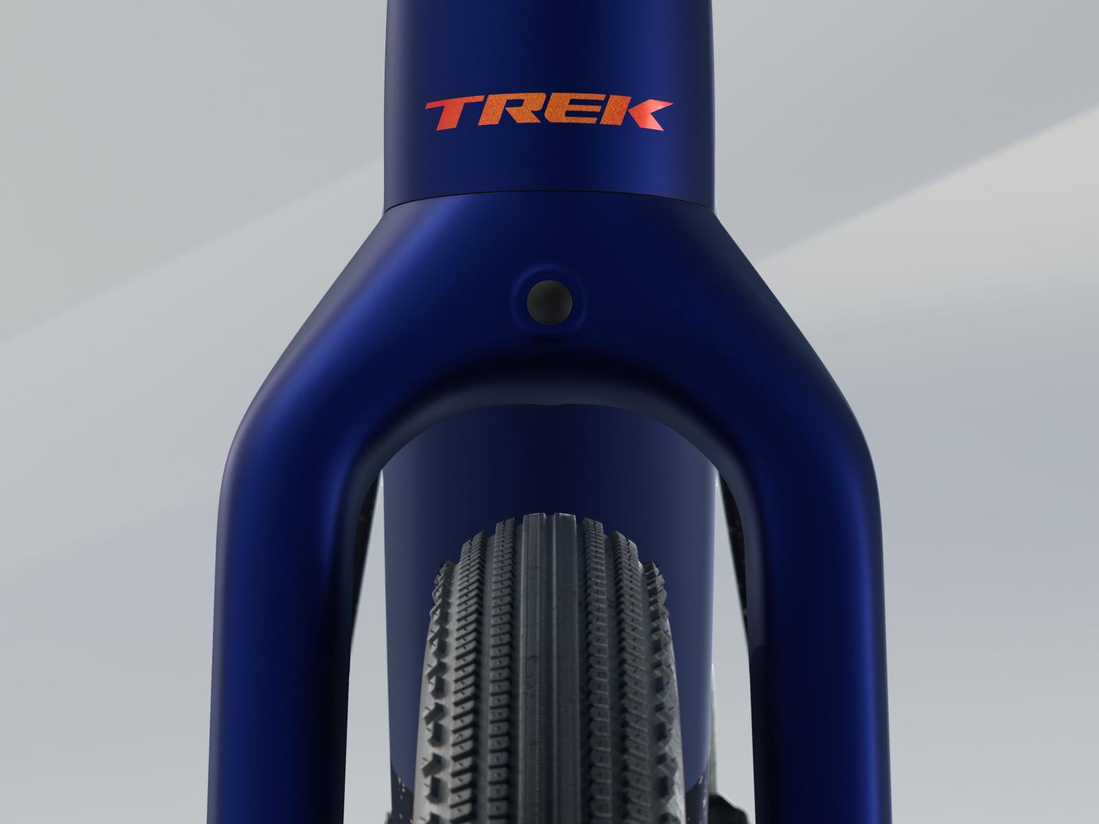 Einen Rahmen aus 500 Series OCLV Carbon samt Carbongabel, Staufach im Unterrohr, Befestigungsmöglichkeiten an Rahmen und Gabel und Platz für Reifen bis 50 mm (wie gemessen). Eine komplett drahtlose SRAM Rival AXS 1x12-Schaltung, hydraulische Scheibenbremsen, eine Carbonsattelstütze und Bontrager Paradigm Comp Tubeless-Ready-Laufräder mit 42 mm breiten Reifen.