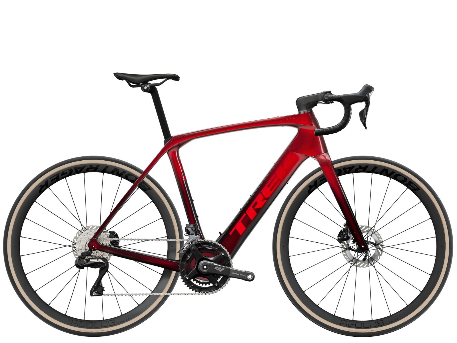 Einen Rahmen aus 800 Series OCLV Carbon mit hinterem IsoSpeed. Einen kraftvollen Harmonic Pin-Ring Motor von TQ mit einem Drehmoment von 60 Nm, der dich bis zu einer Geschwindigkeit von 25 km/h unterstützt, einen 360 Wh großen integrierten Akku, ein in den Rahmen integriertes, smartes LED-Display und diskret in die Bremsgriffgummis verbaute Bedienelemente für das Umschalten der Unterstützungsmodi. Aeolus Pro 37 Laufräder aus OCLV Carbon, eine drahtlose, elektronische Shimano Ultegra Di2 2x12-Schaltung, Carbonkurbeln, ein vibrationsdämpfender Bontrager Aero Pro Lenker und ein RCS Pro Vorbau mit vollständig integrierter Zugführung
