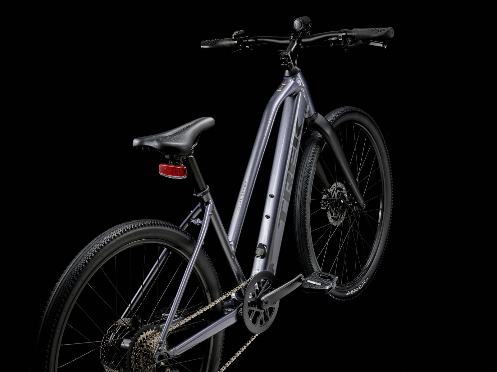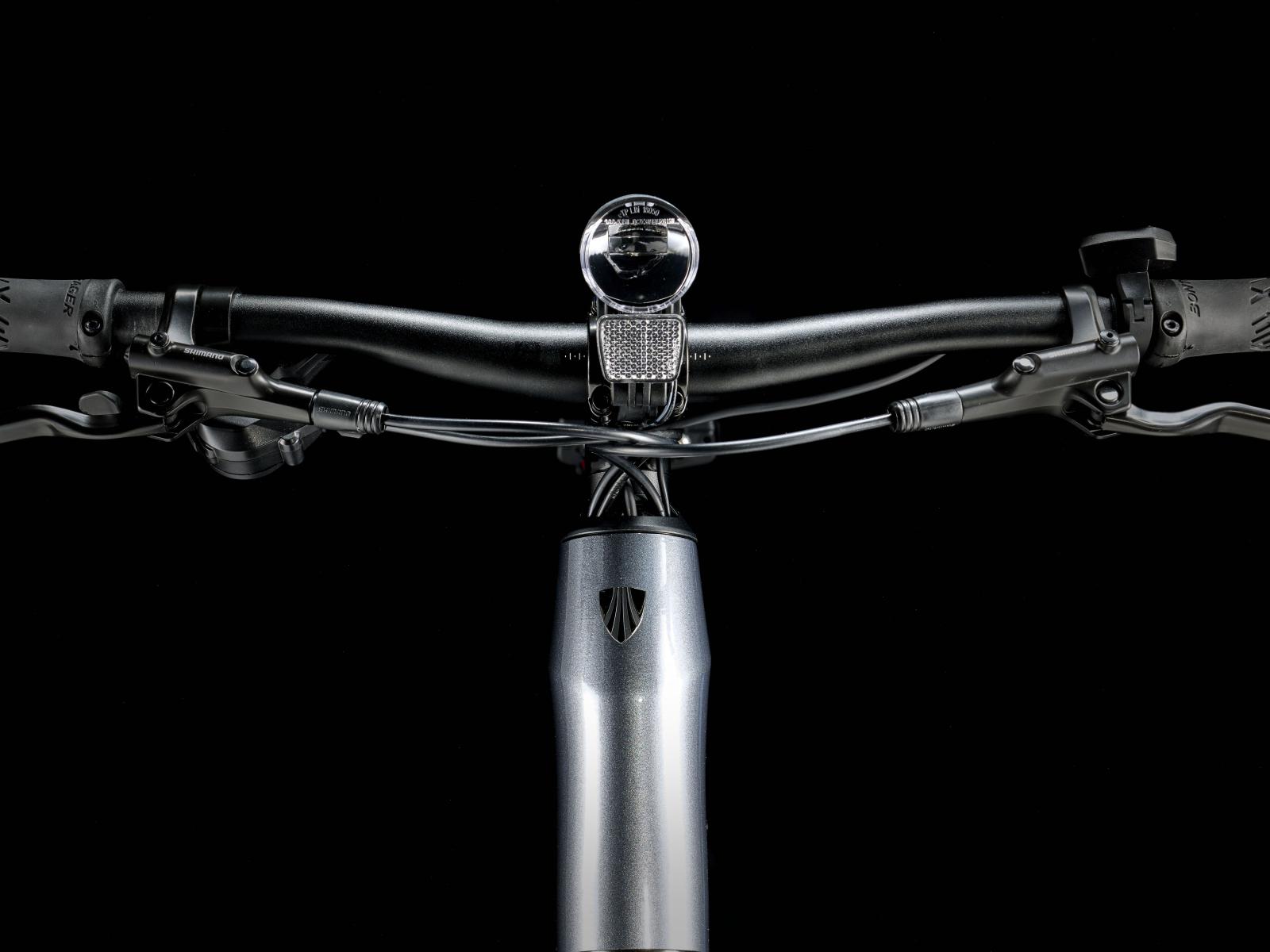 Einen leichten Aluminiumrahmen mit Stagger-Design zum einfachen Auf- und Absteigen, Treks proprietäres Antriebsunterstützungssystem von Hyena mit Nabenmotor mit 250 W Leistung und 40 Nm Drehmoment zur Antriebsunterstützung bis 25 km/h und einen 250 Wh starken Akku für bis zu 55 km Reichweite pro Ladung. Dazu gibt es steife 650B-Laufräder mit breiten 50C-Reifen zur Verbesserung von Geländegängigkeit und Komfort in abwechslungsreichem Terrain, eine zuverlässige 8-Gang-Schaltung von Shimano, hydraulische Scheibenbremsen, eine integrierte, akkugespeiste Beleuchtung und einen Seitenständer.