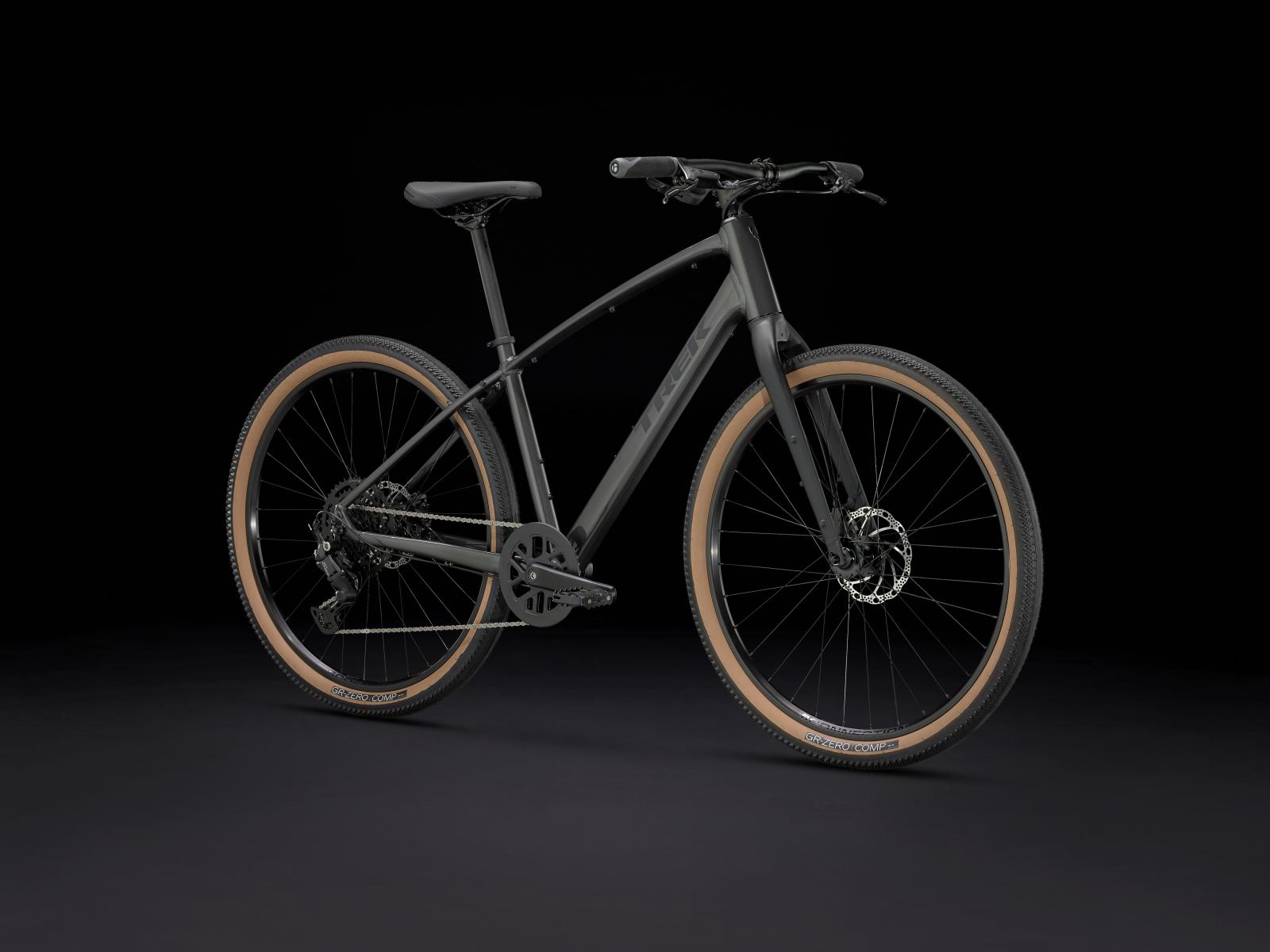 Einen leichten Aluminiumrahmen mit interner Zugführung für einen schnittigen Look und mit Montagepunkten für Gepäckträger und Schutzbleche, 27,5 Zoll große Laufräder mit breiten 50C-Reifen zur Verbesserung der Geländegängigkeit und des Komforts in abwechslungsreichem Terrain, eine zuverlässige Shimano CUES 1x9-Schaltung mit breitem Übersetzungsbereich für eine stets optimale Trittfrequenz, komfortable ergonomische Griffe und kraftvolle hydraulische Scheibenbremsen für zuverlässige Bremsleistung bei jeder Witterung.