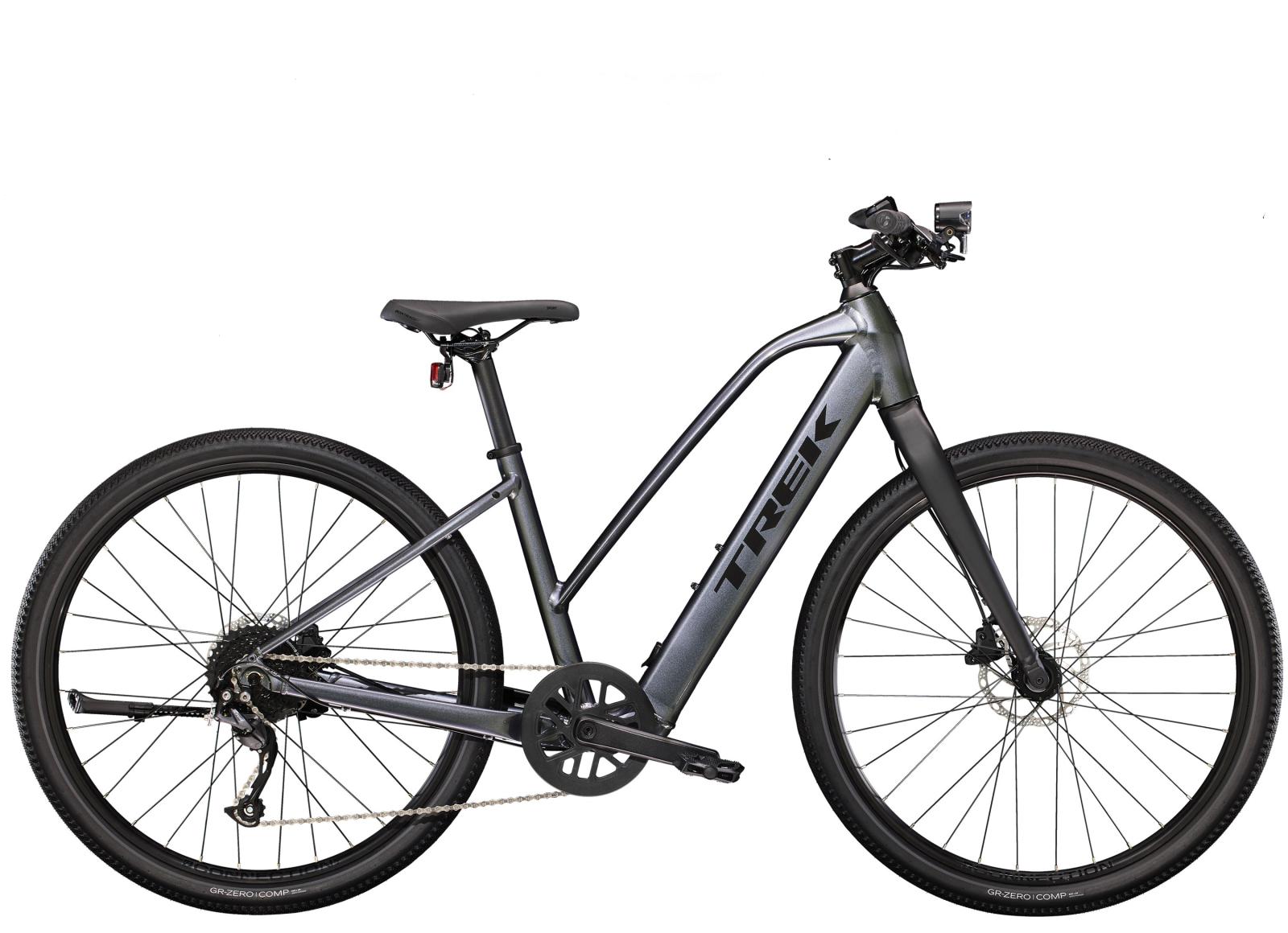 Einen leichten Aluminiumrahmen mit Stagger-Design zum einfachen Auf- und Absteigen, Treks hauseigenes Antriebssystem mit Nabenmotor mit 250 W Leistung und 40 Nm Drehmoment zur natürlichen Tretunterstützung bis 25 km/h und einen 250 Wh starken Akku für bis zu 55 km Reichweite pro Ladung. Dazu gibt es steife 650B-Laufräder mit breiten 50C-Reifen zur Verbesserung von Geländegängigkeit und Komfort in abwechslungsreichem Terrain, eine zuverlässige 9-Gang-Schaltung von Shimano, hydraulische Scheibenbremsen, eine integrierte, akkugespeiste Beleuchtung und einen Seitenständer.