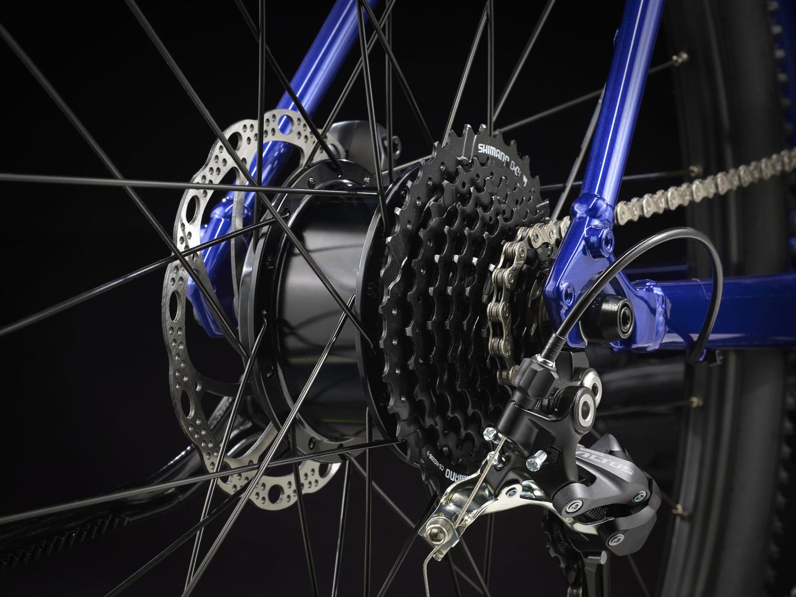 Einen leichten Rahmen samt Gabel aus leichtem Aluminium, Treks hauseigenes Antriebssystem mit Nabenmotor mit 250 W Leistung und 40 Nm Drehmoment zur natürlichen Tretunterstützung bis 25 km/h und einen 250 Wh starken Akku für bis zu 55 km Reichweite pro Ladung. Dazu gibt es steife 650B-Laufräder mit breiten 50C-Reifen zur Verbesserung von Geländegängigkeit und Komfort in abwechslungsreichem Terrain, eine zuverlässige 9-Gang-Schaltung von Shimano, hydraulische Scheibenbremsen, eine integrierte, akkugespeiste Beleuchtung und einen Seitenständer.