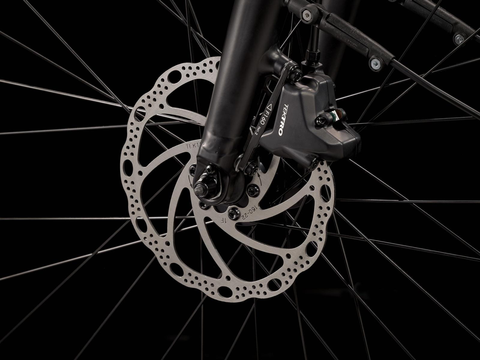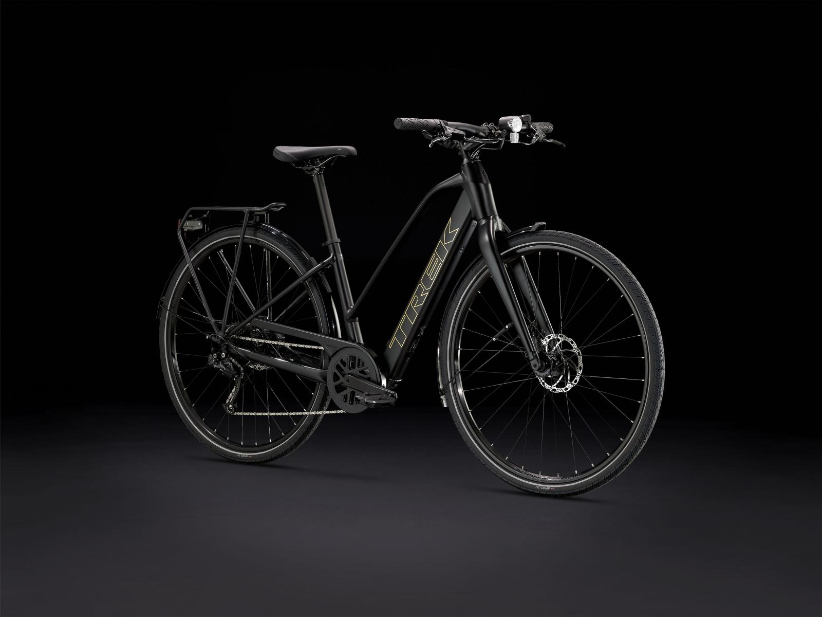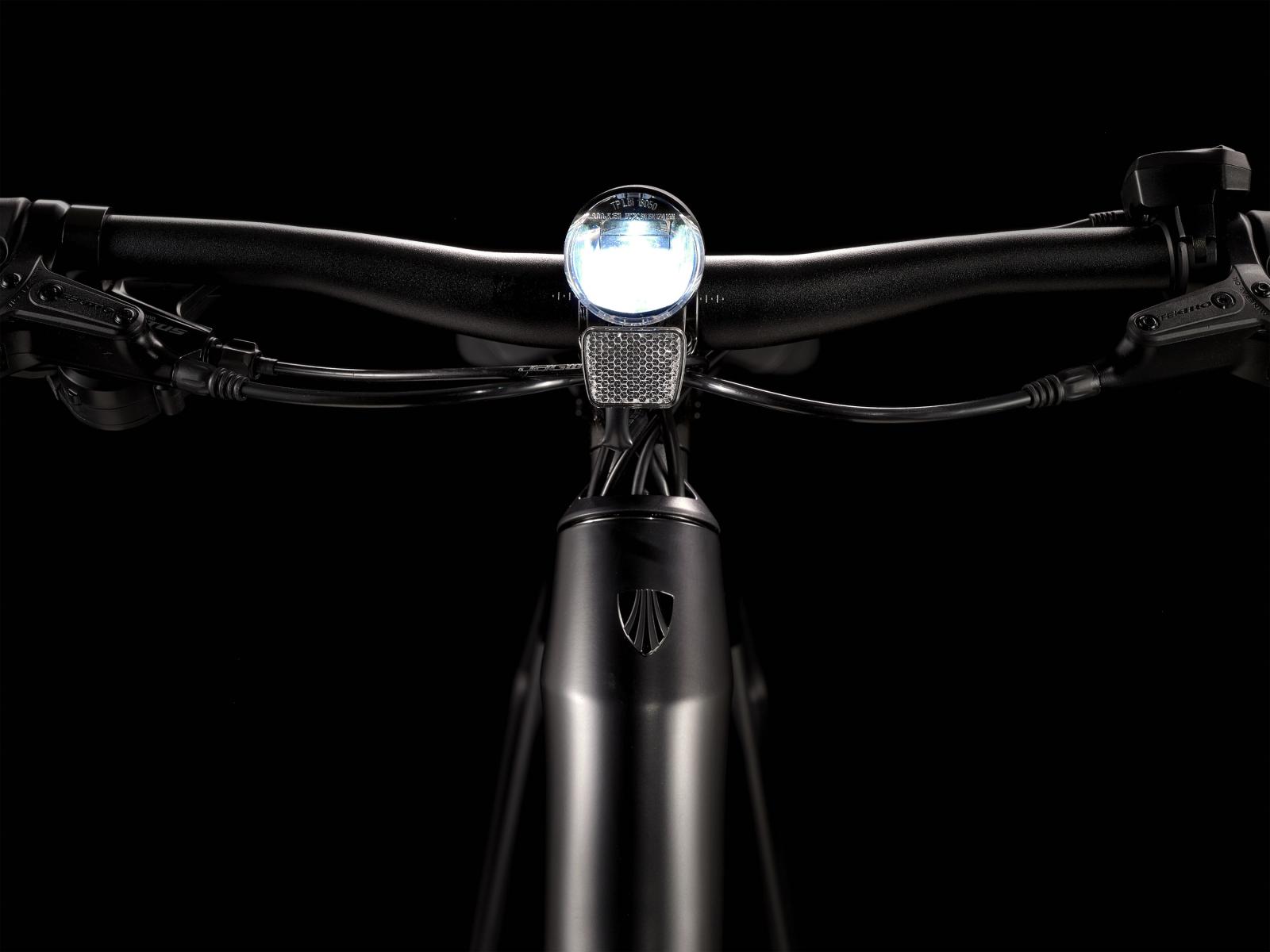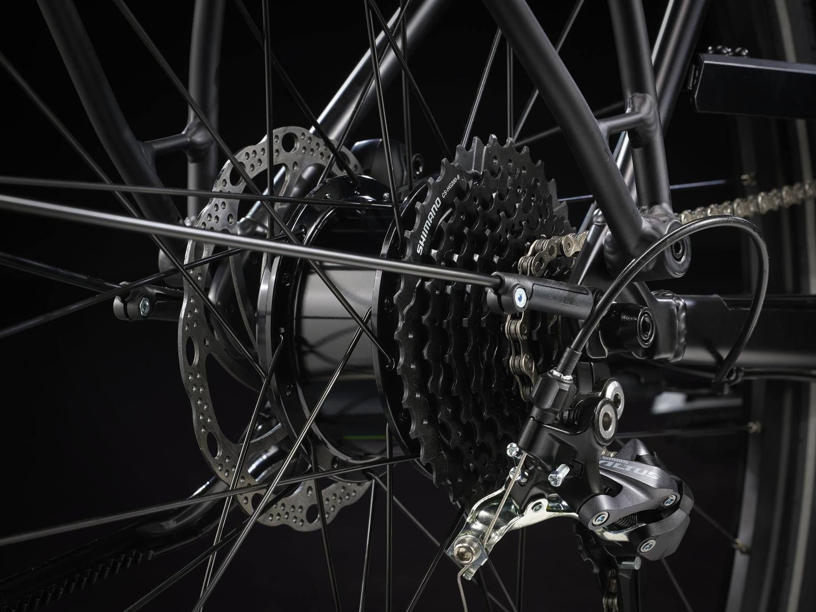 Einen leichten Aluminiumrahmen mit Stagger-Design zum einfachen Auf- und Absteigen, Treks hauseigenes Antriebssystem mit Nabenmotor mit 250 W Leistung und 40 Nm Drehmoment zur natürlichen Tretunterstützung bis 25 km/h und einen 250 Wh starken Akku für bis zu 56 km Reichweite pro Ladung. Außerdem bekommst du schnelle 700C-Laufräder und leicht rollende, aber fahrstabile 40C-Reifen mit reflektierenden Flanken, eine zuverlässige Shimano-Schaltung mit 9 Gängen, hydraulische Scheibenbremsen, eine integrierte, akkugespeiste Beleuchtung, einen MIK-kompatiblen Heckgepäckträger, Schutzbleche und einen Seitenständer.