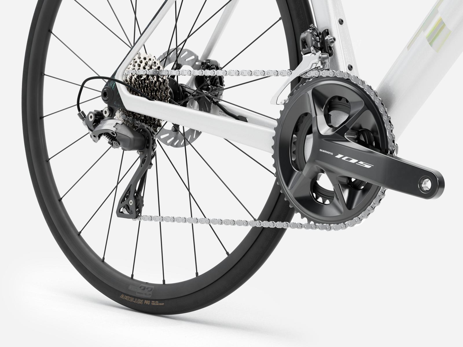 Das Madone SL 5 Gen 8 ist ein leichtes Aero-Rennrad, das Elite-Renntechnologie erschwinglich macht. Es bietet ähnliche aerodynamische Vorteile wie das höherpreisige Madone SLR Gen 8, basiert aber auf einem erschwinglicheren Layup aus 500 Series OCLV Carbon und einem zweiteiligen Cockpit mit interner Zugführung. Die zuverlässige und präzise Shimano 105 Gruppe sowie der Lenker und die Laufräder aus Aluminium halten den Preis im überschaubaren Rahmen und überzeugen mit einer großartigen Performance.