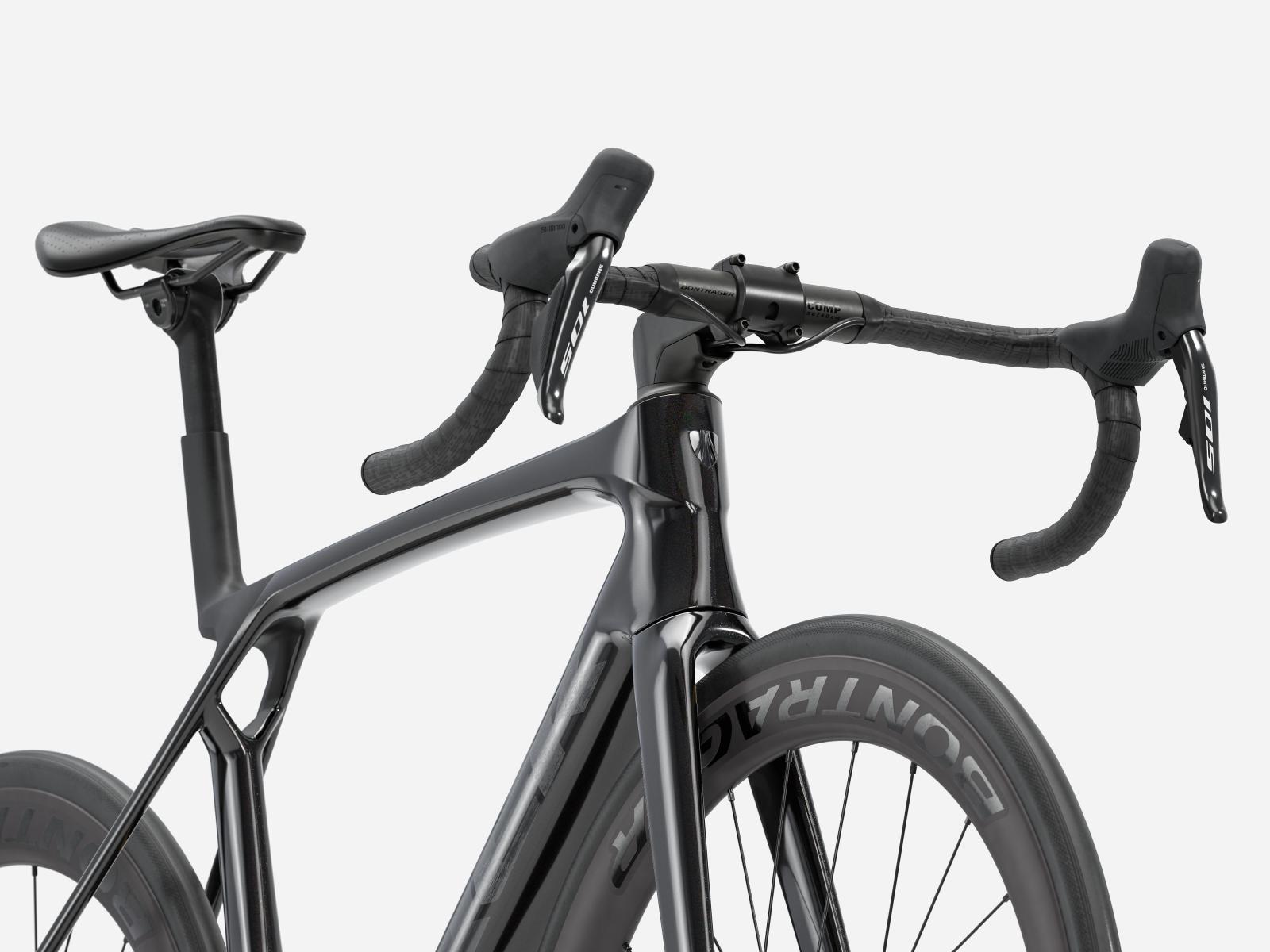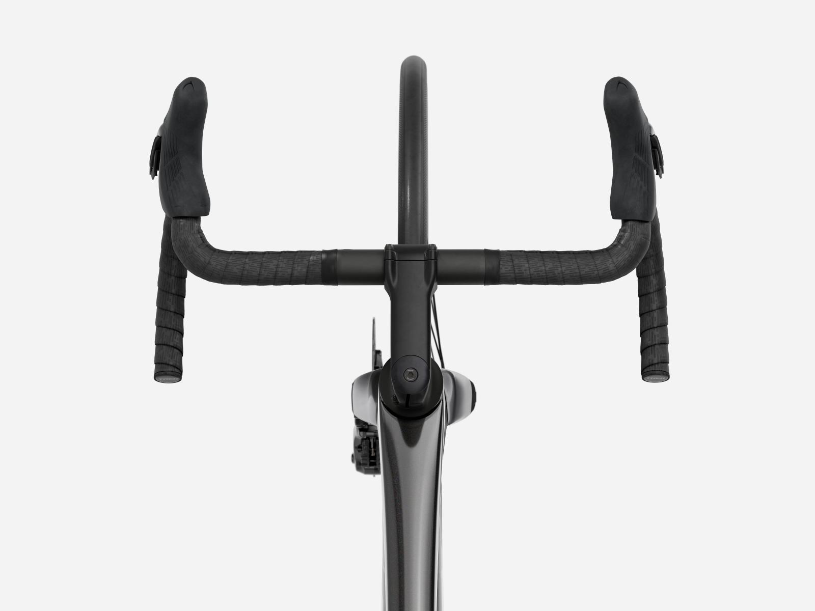 Der im Vergleich zum Unterlenker schmalere Oberlenker des Madone Gen 8 ermöglicht eine auf Aerodynamik oder Power optimierte Positionierung auf dem Bike. Und dank zweiteiligem Lenker/Vorbau-Design lässt sich die Passform schnell und einfach anpassen.