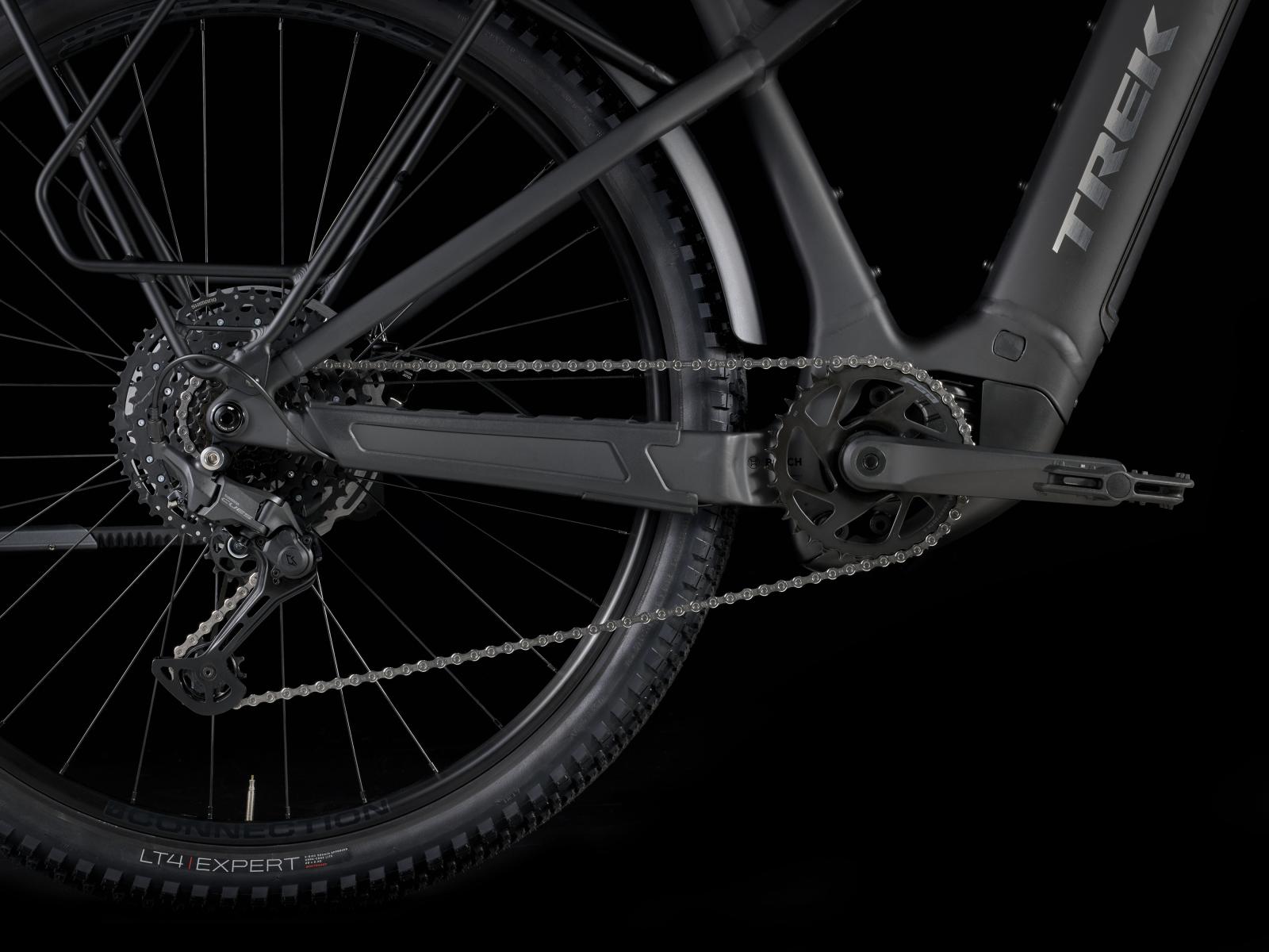 Einen leichten Hardtail-Rahmen aus Alpha Platinum Aluminium mit einer luftgefederten 120-mm-Federgabel von SR Suntour. Einen leistungsstarken Bosch Performance Line CX Motor mit 750 W Leistung und bis zu 100 Nm Drehmoment samt herausnehmbarem, integriertem PowerTube RIB 2.0 Akku mit 600 Wh Kapazität und Purion 200 Controller. Eine langlebige Shimano CUES 10-Gang-Schaltung, zuverlässig zupackende hydraulische Scheibenbremsen von Tektro und Befestigungsmöglichkeiten für Accessoires and Zubehör. Abgerundet wird die Ausstattung von integrierten Leuchten, Schutzblechen und einem Heckgepäckträger.