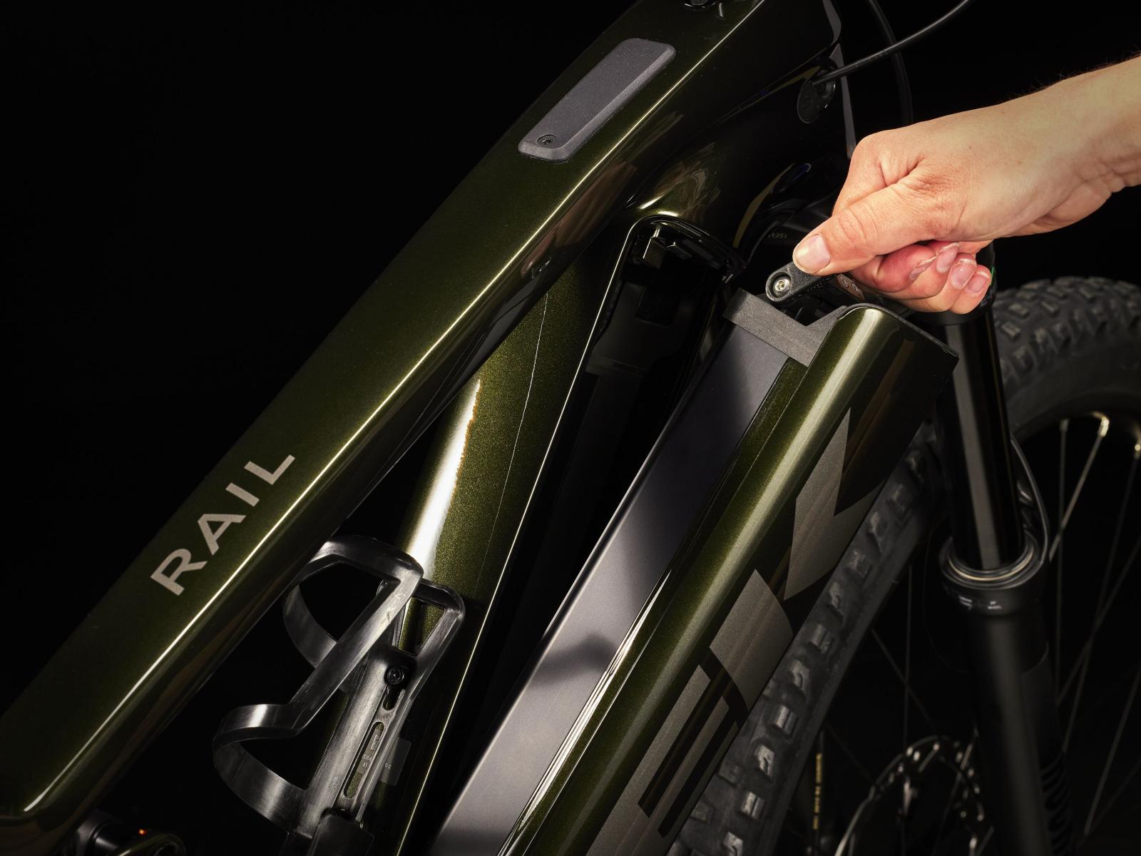 - Treks Removable Integrated Battery (RIB) sieht gut aus und ist extrem benutzungsfreundlich: Der Akku ist komplett im Rahmen integriert und somit bestens geschützt, lässt sich ohne Werkzeuge aber ganz einfach entnehmen und lässt Platz für einen Flasch