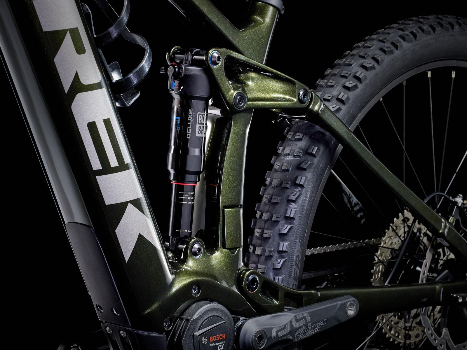 Einen Rahmen aus OCLV Mountain Carbon mit einem 750 Wh starken RIB-Akku, eine super schnell ansprechende RockShox 35 Gold RL-Gabel mit 160 mm Federweg, DebonAir-Feder, Motion Control-Dämpfung und Lockout, einen RockShox Deluxe+ Select-Dämpfer mit 150 mm Federweg, den neuesten Bosch Performance Line CX-Motor mit Smart System zur Antriebsunterstützung bis 25 km/h samt Bluetooth® LED Remote intuitive Konnektivität und zur Aktivitätsverfolgung über die eBike Flow App. Für geschmeidige Gangwechsel sorgt der Deore 12fach-Antrieb mit extragroßem Klettergang mit 52 Zähnen.