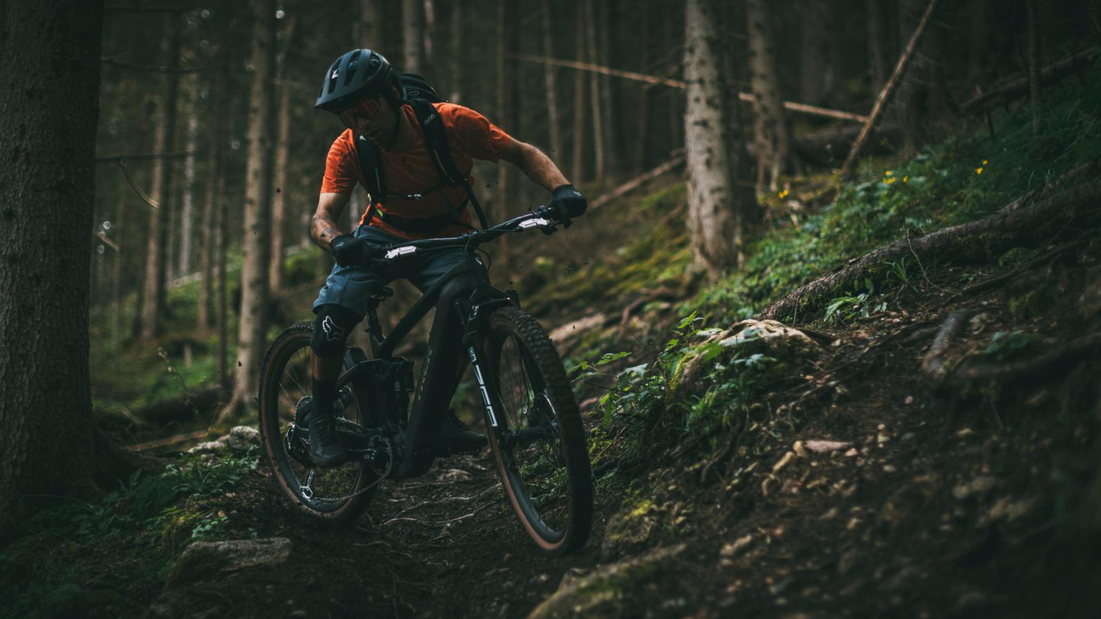 … du ein E-Mountainbike mit Carbonrahmen willst, das dir auf deinen epischen Trailabenteuern mit mächtig Power und ganz viel Federweg uneingeschränkt zur Seite steht. Du brauchst genug Federweg, um dich über Felsen, Wurzeln und jedes andere erdenkliche Hindernis zu kämpfen, richtig viel Power, um steile, herausfordernde Anstiege souverän zu bewältigen, und einen großen Akku, der dich auch an deinen längsten Trailtagen zuverlässig unterstützt.