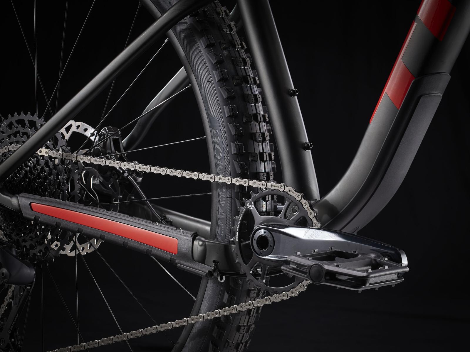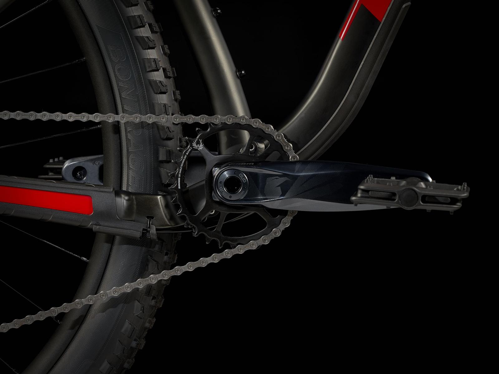 Einen leichten Aluminiumrahmen, eine 140 mm RockShox 35 Gold-Gabel mit Lockout-Funktion, einen SRAM NX Eagle 1x12-Antrieb mit breitem, kletterfreudigem Übersetzungsverhältnis, kraftvoll zupackende 4-Kolben-Scheibenbremsen und eine Variosattelstütze für mehr Bewegungsfreiheit auf Abfahrten, in Kurven und in der Luft. Dazu bekommst du schnell rollende 29"-Laufräder mit Rapid Drive-Hinterradnabe und 108 Zähnen für einen verzögerungsfreien Kraftanschluss sowie griffige, 2,6" breite Reifen.