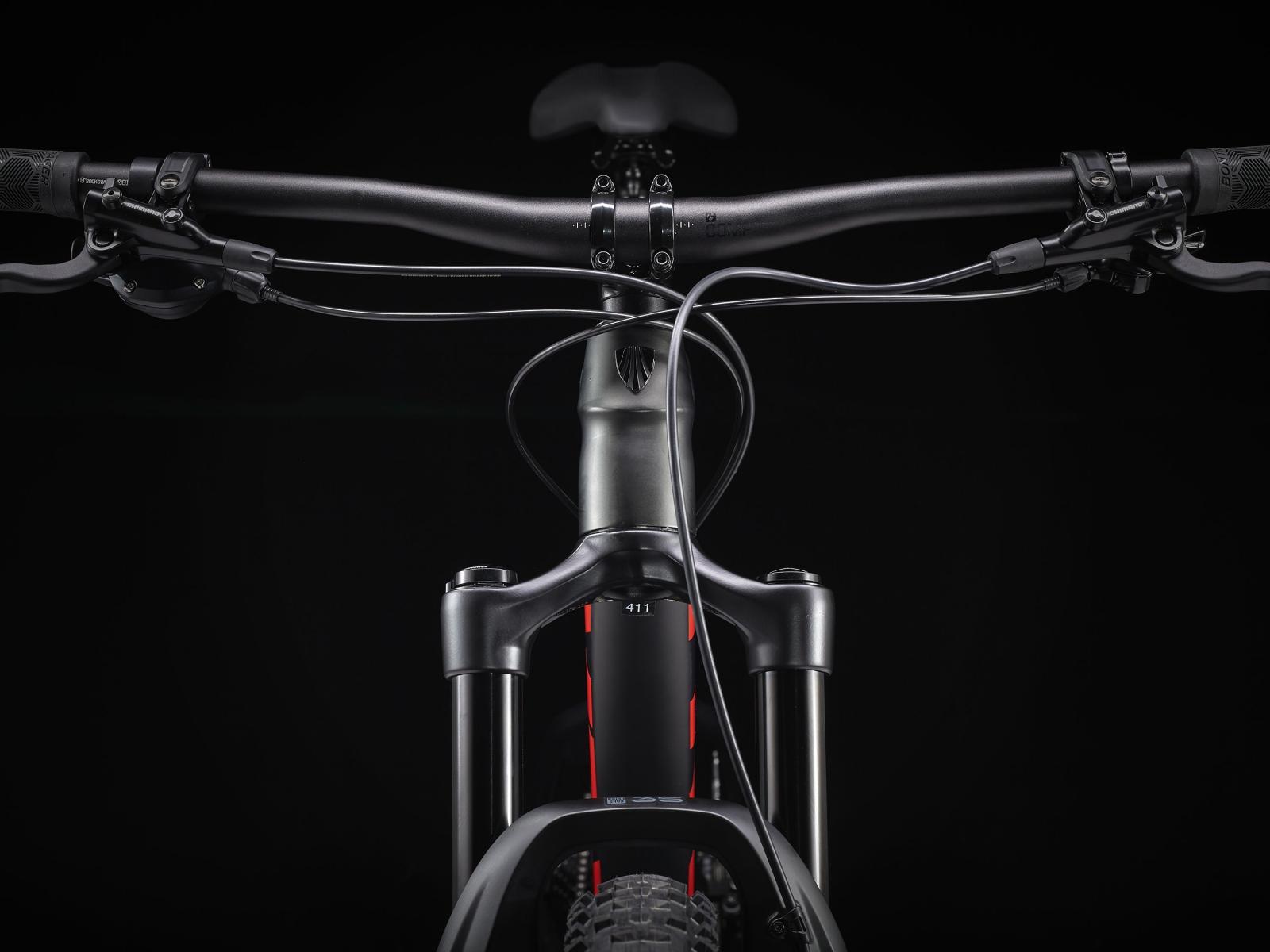 - Dank der Variosattelstütze kannst du den Sattel während der Fahrt absenken, damit er auf Abfahrten nicht im Weg ist.