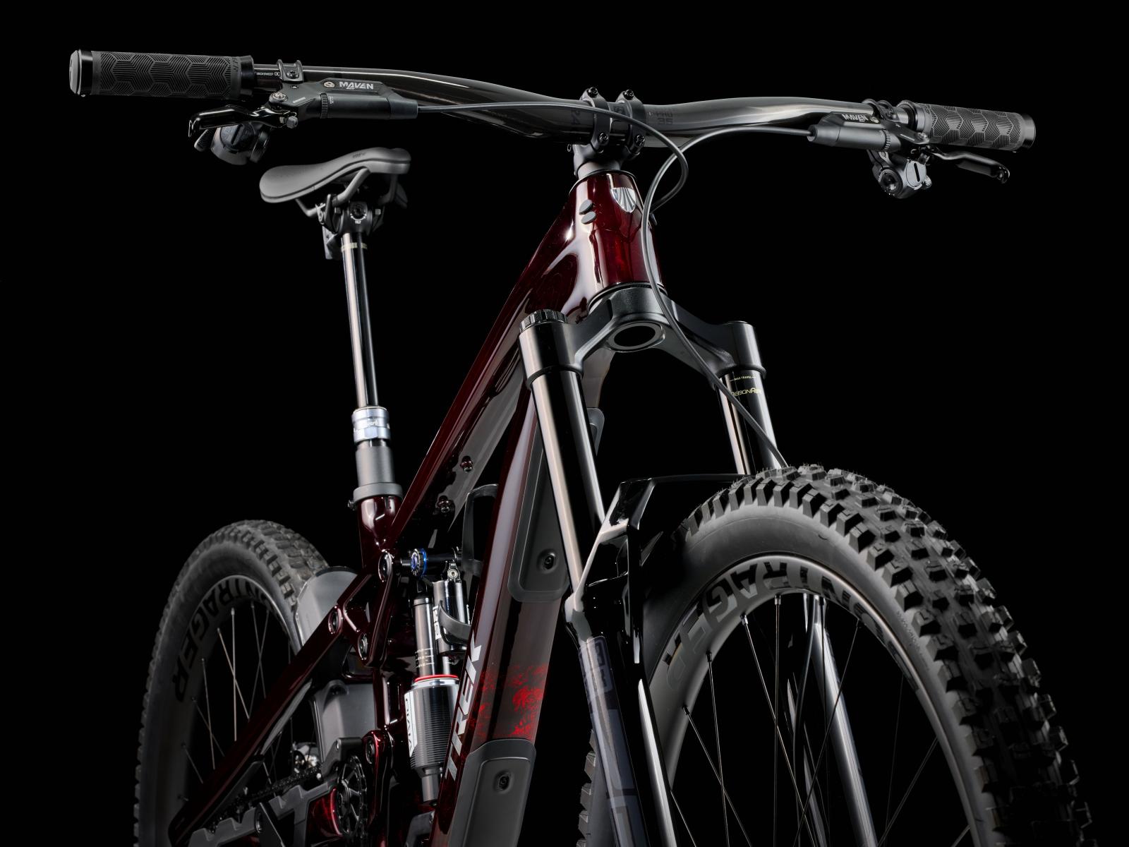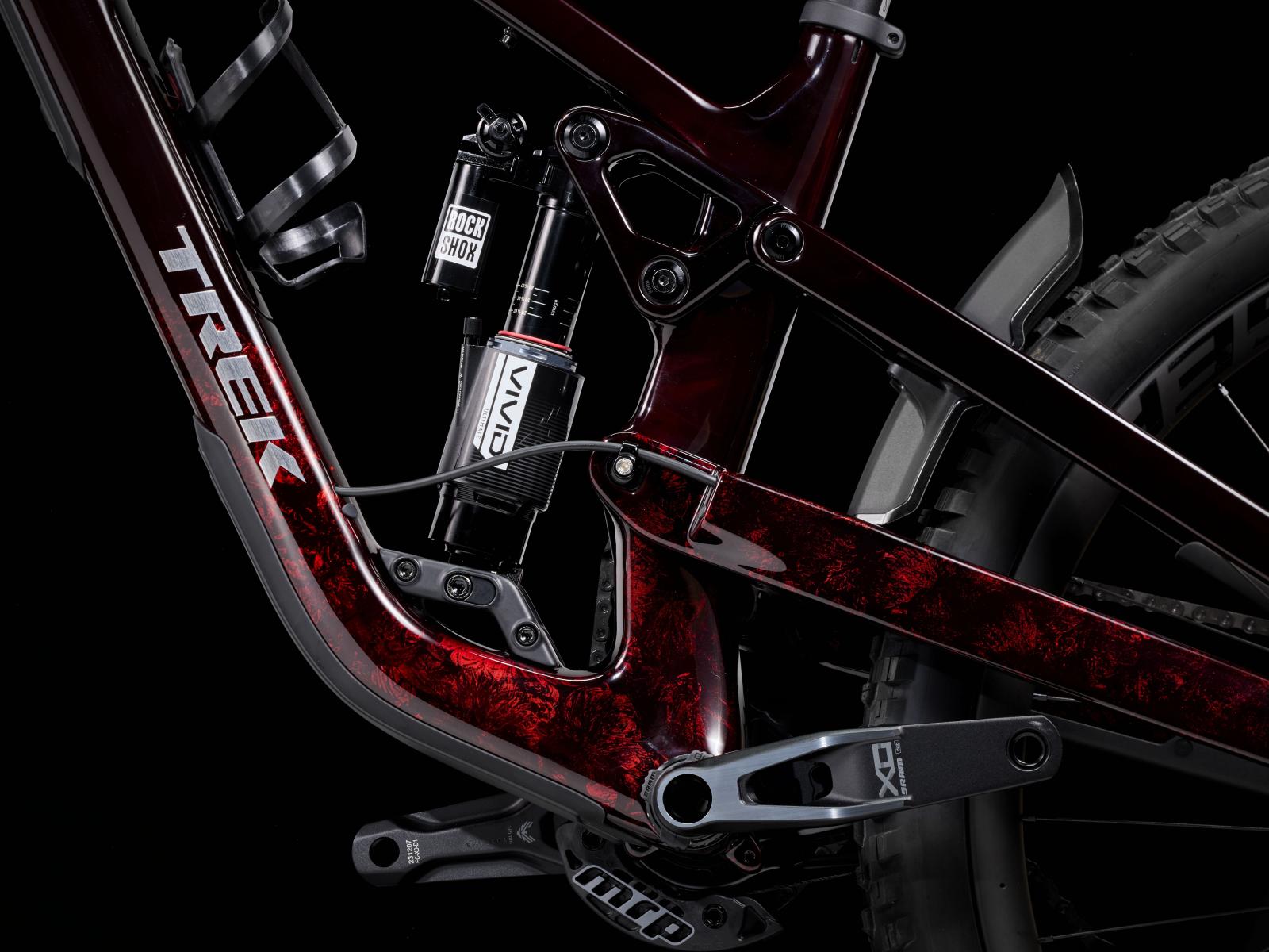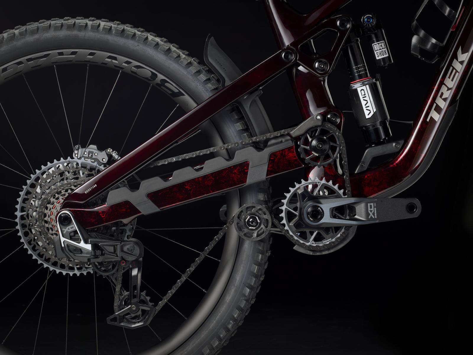 Einen Rahmen aus OCLV Mountain Carbon mit High-Pivot-Fahrwerk sowie Rahmenstaufach, 170 mm vorderen und hinteren Federweg dank RockShox ZEB Ultimate Federgabel mit DebonAir Federung und Charger 3.1 RC2 Dämpfung sowie RockShox Vivid Ultimate Hinterbaudämpfer. Die drahtlose SRAM XX Eagle AXS Transmission schaltet selbst unter Last knackig und präzise, während eine Bontrager Line Variosattelstütze deine Bewegungsfreiheit auf dem Bike ungemein erhöht. Die Bontrager Line Pro 30 Tubeless-Ready-Carbonlaufräder (29" vorn, 27,5" hinten) samt Rapid Drive Naben machen das Bike bereit für vielseitiges Terrain.