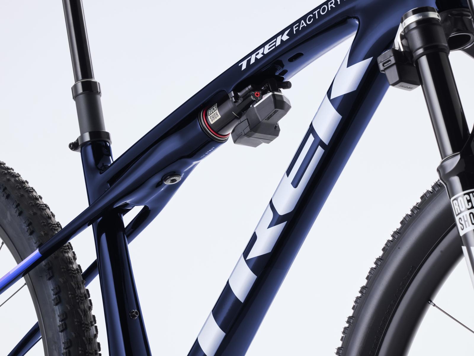 Einen federleichten Rahmen aus hochmoduligem SLR OCLV Mountain Carbon mit moderner XC-Geometrie. Außerdem bekommst du eine RockShox SID SL Ultimate 110-mm-Federgabel mit DebonAir Federung und Charger Race Day Dämpfung und einen RockShox SIDLuxe IsoStrut 80-mm-Hinterbaudämpfer – natürlich komplett mit Flight Attendant Technologie von RockShox. Eine ultraleichte, komplett drahtlose elektronische SRAM X0 AXS 12fach-Transmission, Bontrager Kovee RSL Carbonlaufräder, eine integrierte Bontrager RSL Lenker/Vorbau-Einheit aus Carbon, eine drahtlose RockShox Reverb AXS Variosattelstütze und hydraulische SRAM Motive Silver 4-Kolben-Scheib