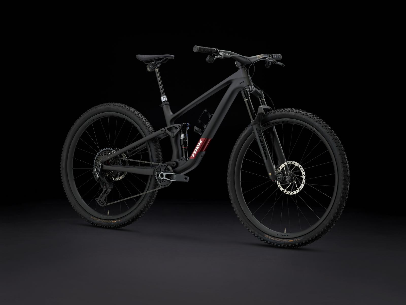 Einen Rahmen aus OCLV Mountain Carbon mit vierfach verstellbarem Mino Link an der unteren Dämpferaufnahme zur Feinanpassung der Rahmengeometrie und des Hebelverhältnisses des Fahrwerks. Eine RockShox Pike Ultimate Gabel mit 130 mm Federweg, DebonAir Luftfeder und Charger 3.1 RC2 Dämpfung sowie einen RockShox Deluxe Ultimate RCT Hinterbaudämpfer mit 120 mm Federweg. Abgerundet wird die Ausstattung von einer drahtlosen SRAM X0 AXS Transmission, hydraulischen SRAM Level Silver Stealth 4-Kolben-Scheibenbremsen, einer RockShox Reverb AXS Variosattelstütze und Bontrager Line Pro 30 Tubeless-Ready-Carbonlaufrädern.