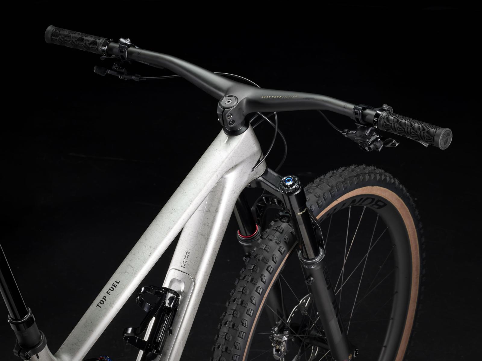 Wenn du auf der Suche nach einem leichten Carbon-Trailbike mit einem ausgewogenen Verhältnis aus verspieltem Handling und hoher Geländegängigkeit bist, hast du es mit dem Top Fuel 9.8 XTR Gen 4 definitiv gefunden. Sein ultraleichter Rahmen kommt mit dem vierfach verstellbaren Mino Link, der an der unteren Dämpferaufnahme sitzt und die Anpassung der Rahmengeometrie und des Fahrwerksgefühls ermöglicht. Darüber hinaus punk