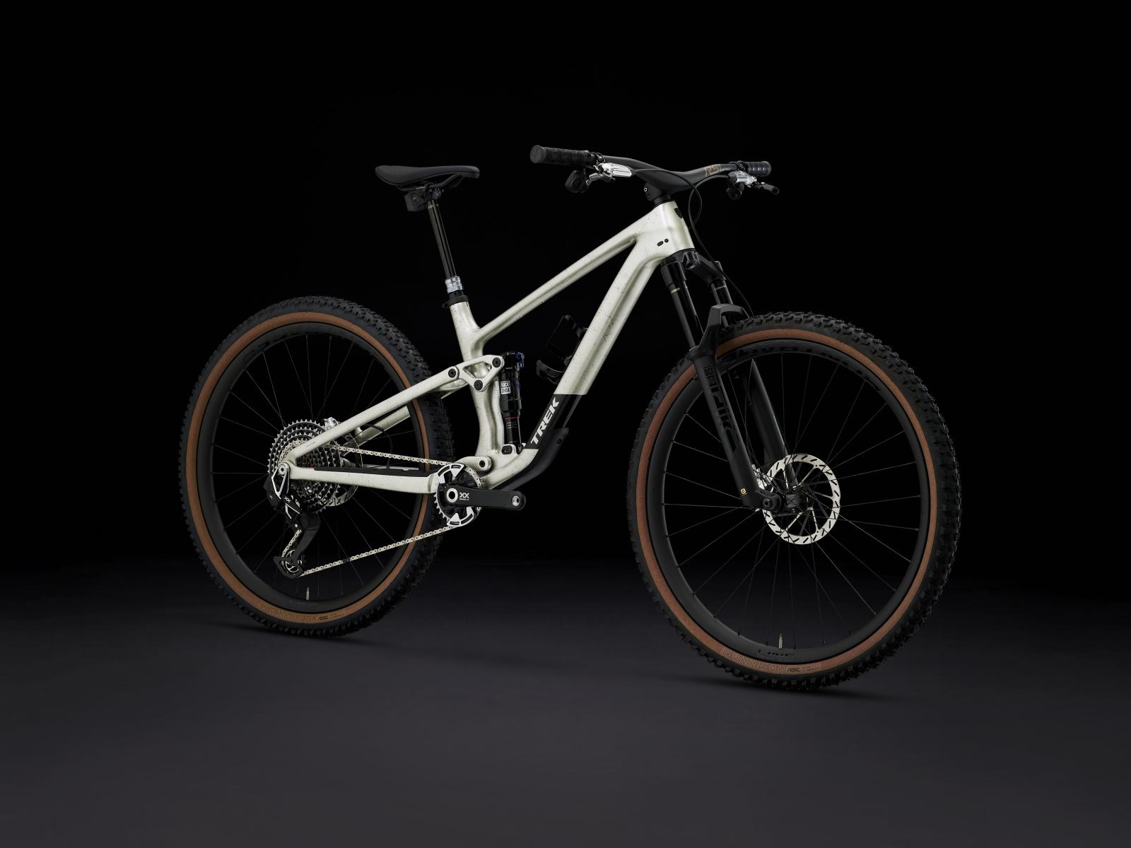 Einen Rahmen aus OCLV Mountain Carbon mit vierfach verstellbarem Mino Link an der unteren Dämpferaufnahme zur Feinanpassung der Rahmengeometrie und des Hebelverhältnisses des Fahrwerks. Eine RockShox Pike Ultimate Gabel mit 130 mm Federweg, DebonAir Luftfeder und Charger 3.1 RC2 Dämpfung sowie einen RockShox Deluxe Ultimate RCT Hinterbaudämpfer mit 120 mm Federweg. Abgerundet wird die Ausstattung von einer ultraleichten drahtlosen SRAM XX AXS Transmission, hydraulischen SRAM Level Ultimate 4-Kolben-Scheibenbremsen, einer RockShox Reverb AXS Variosattelstütze und Bontrager Line Pro 30 Tubeless-Ready-Carbonlaufrädern.