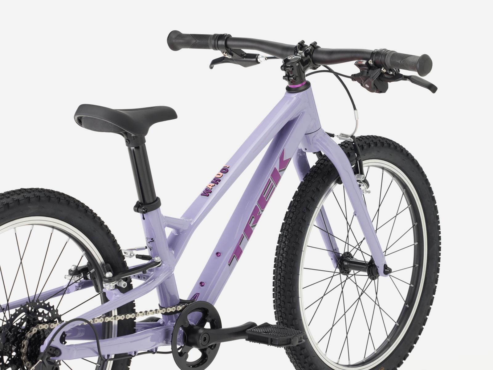 Einen Rahmen aus Alpha Silver Aluminium mit 20 Zoll großen Laufrädern und 2 Zoll breiten Reifen, die für Grip und Geschwindigkeit auf Asphalt konzipiert sind. Dazu gibt es eine speziell auf Kinderbedürfnisse zugeschnittene Ausstattung, wie etwa die intuitive 8-Gang-Schaltung von microSHIFT und unkomplizierten Felgenbremsen samt kindgerechten Bremshebeln.
